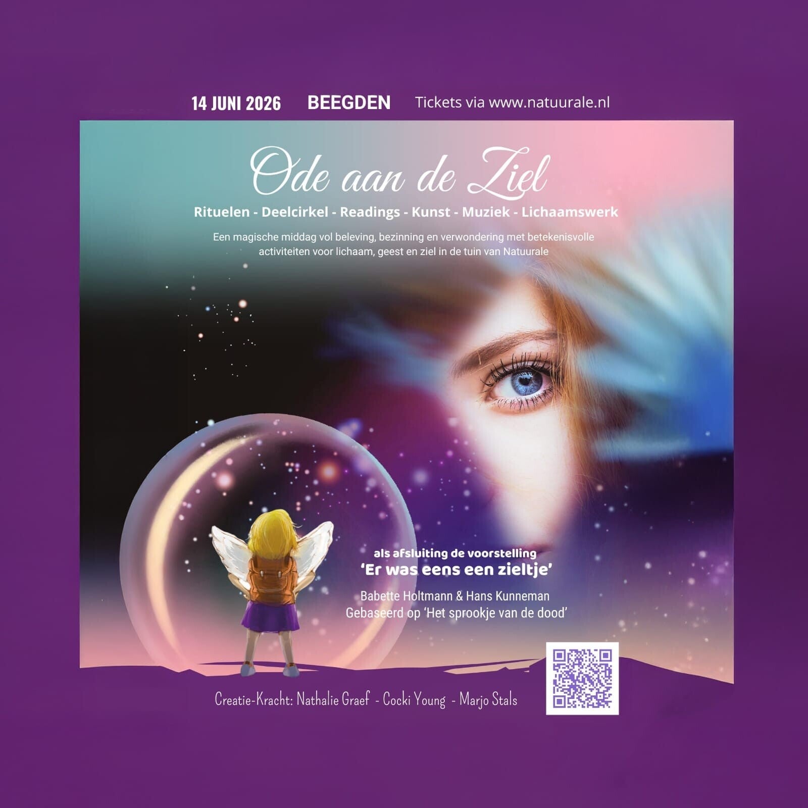 HARTESTEUN nodigt je uit voor een magische middag vol beleving, bezinning en verwondering, met betekenisvolle activiteiten voor lichaam, geest en ziel. Stap maar even uit het alledaagse en herinner je weer wie je in wezen bent: een ziel op reis door het aardse bestaan. Reis deze middag door de tuin van Natuurale om te ervaren, te delen en te genieten van bijzondere activiteiten met als afsluiting de theatervoorstelling 'Er was eens een zieltje'.